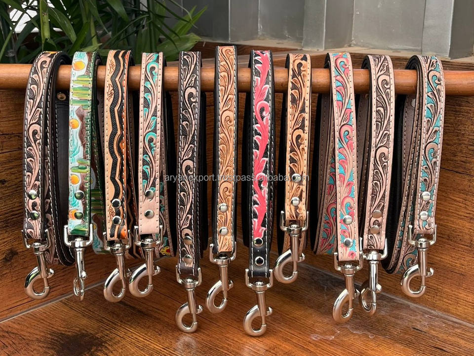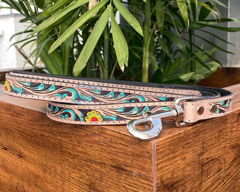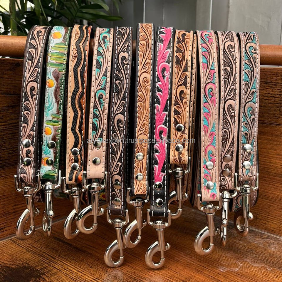 Personalized Pet Accessories Hand Tooled Leather Dog Leash with Comfortable Padded Handle Customizable Genuine Leather Pet Leash