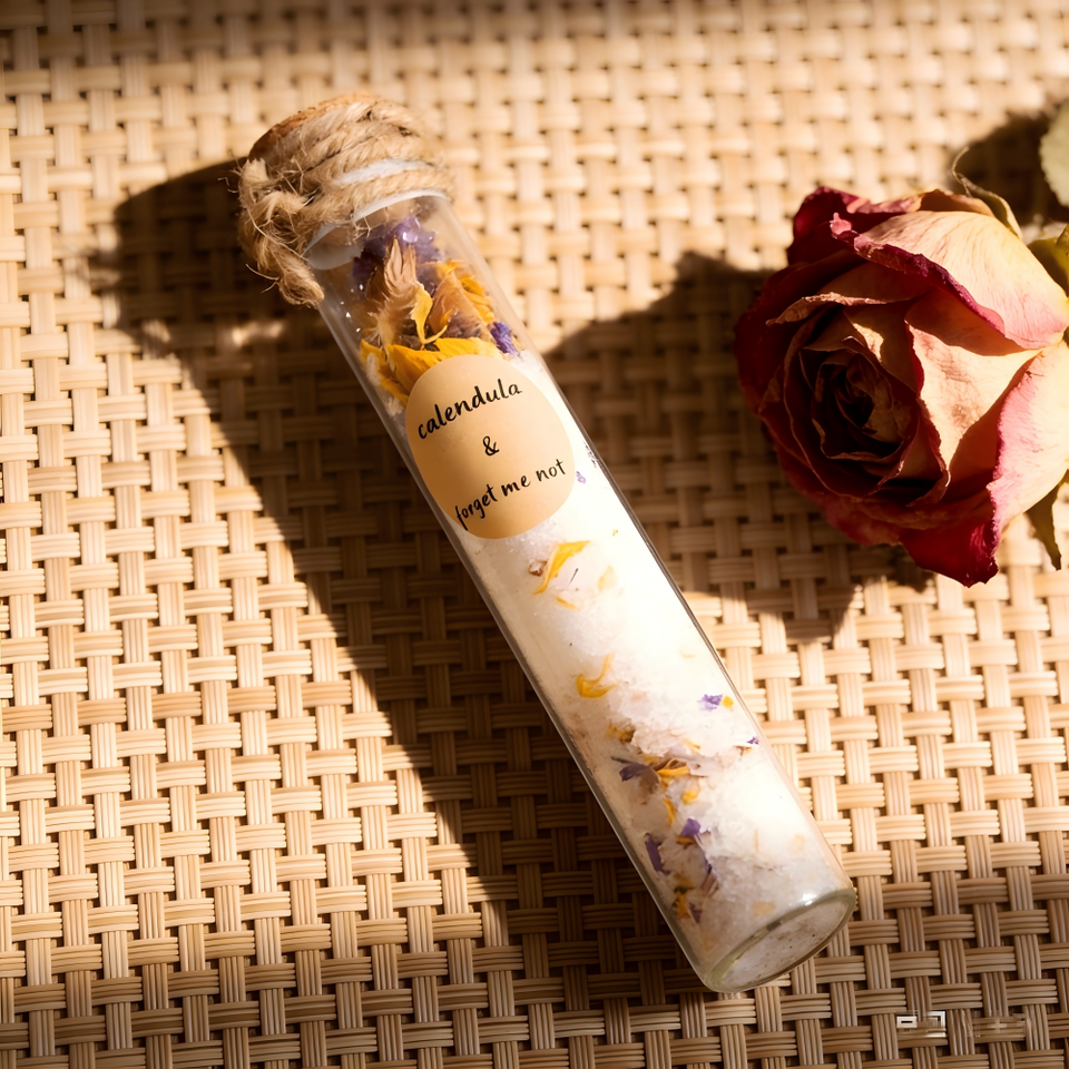 ingrédients:Sel de bain de l'Himalaya + fleurs séchées + huiles essentielles