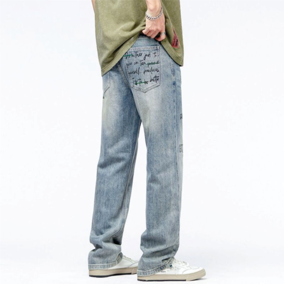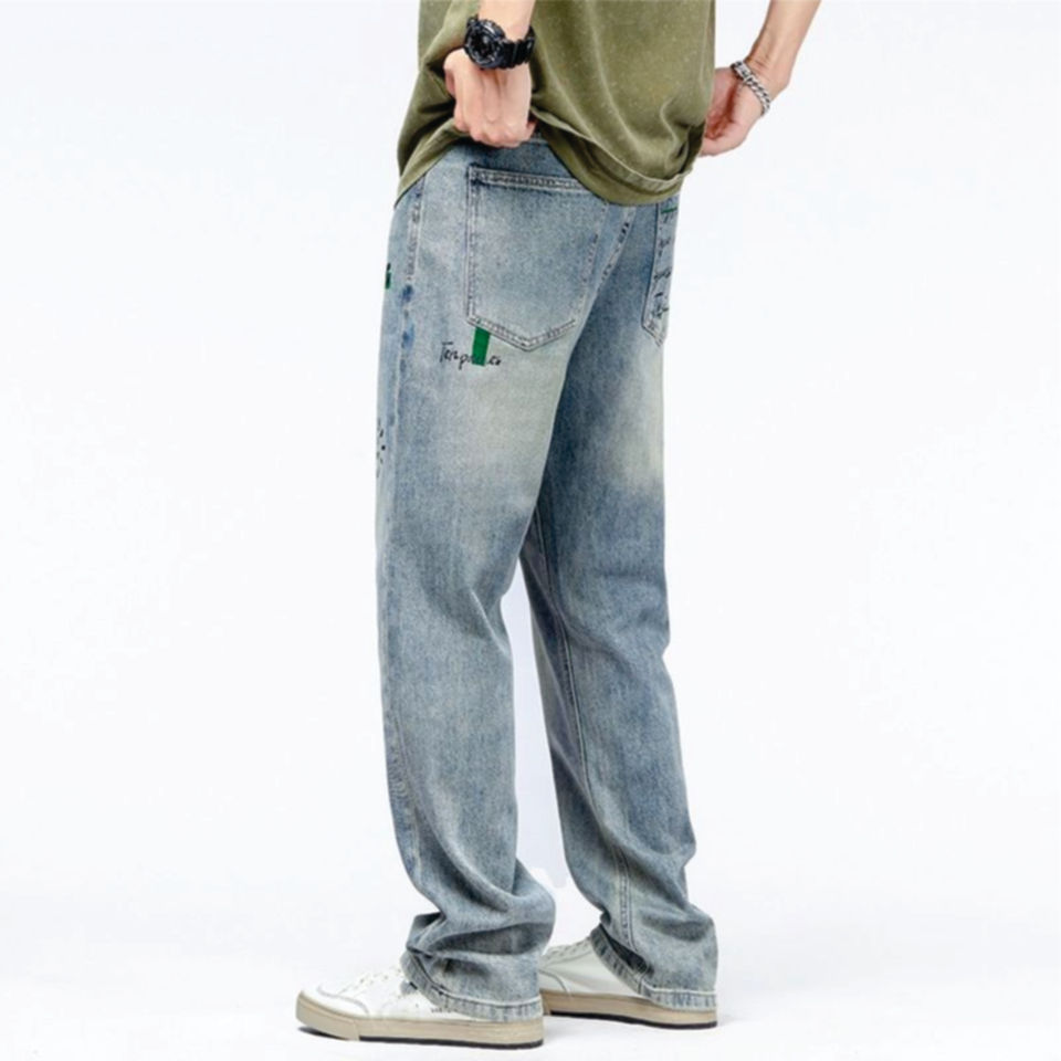 Jeans pour hommes à coupe slim imprimés personnalisés, pantalons décontractés pour garçons à la mode et polyvalents, jeans en denim pour hommes
