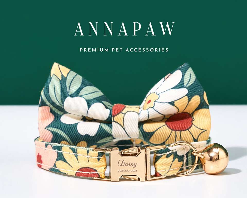 Personalized Puppy Bowtie,Handmade Summer Flower Bell Pet Dad Gifts,Pearl Collar Cat Leash Gift For Her