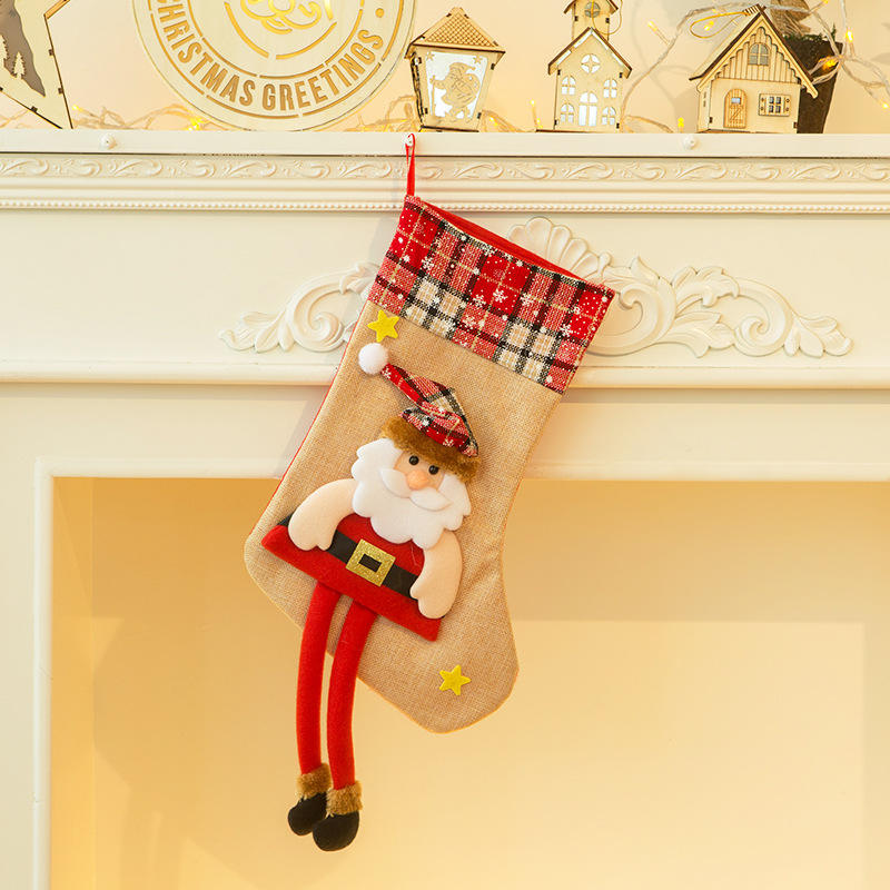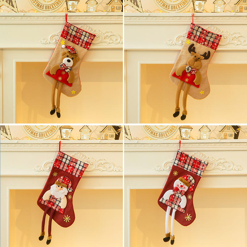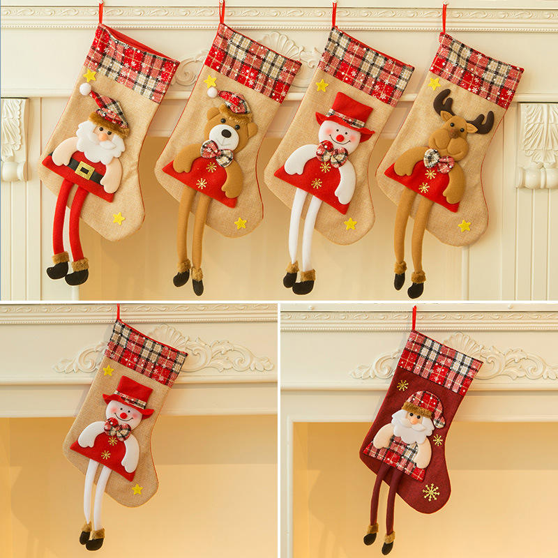 Bas de Noël moderne rouge personnalisé avec des chaussettes en stock imprimées avec nom brodé pour joyeux Noël