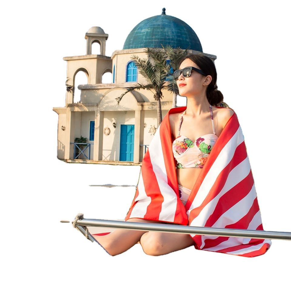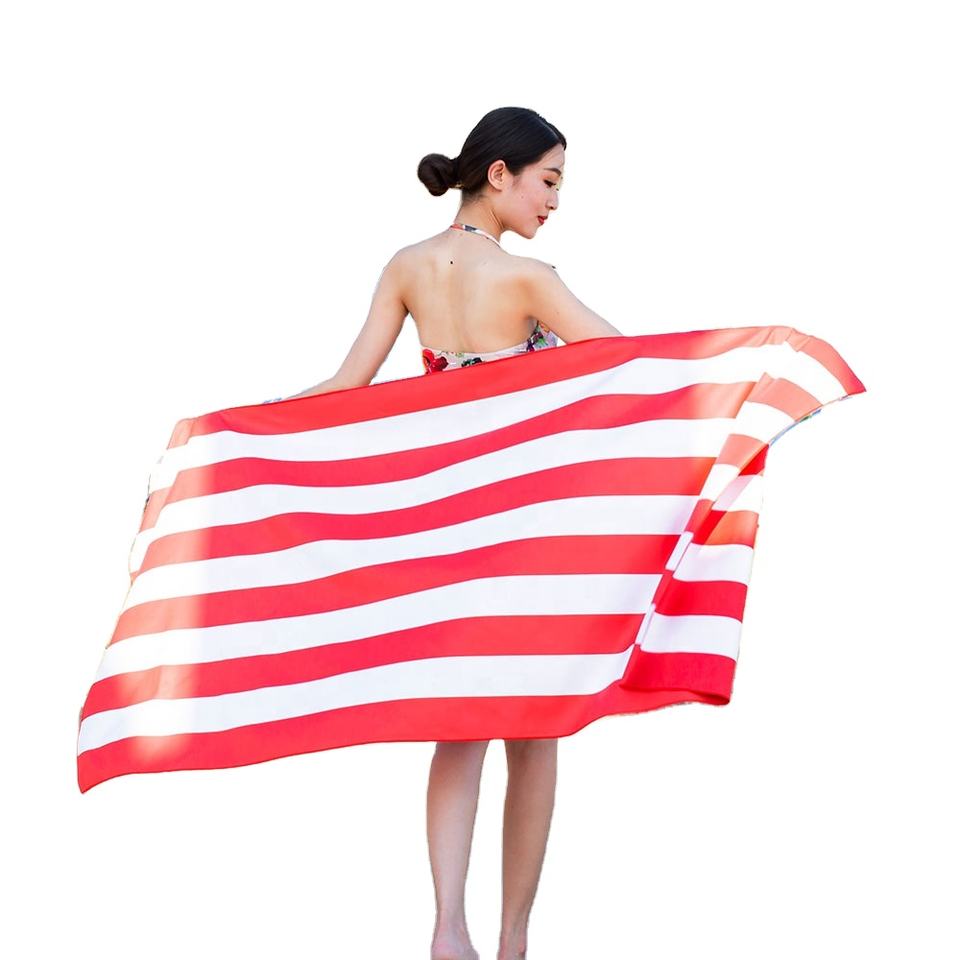 Serviette de plage rayée sans sable à séchage rapide en microfibre rouge et blanc personnalisée
