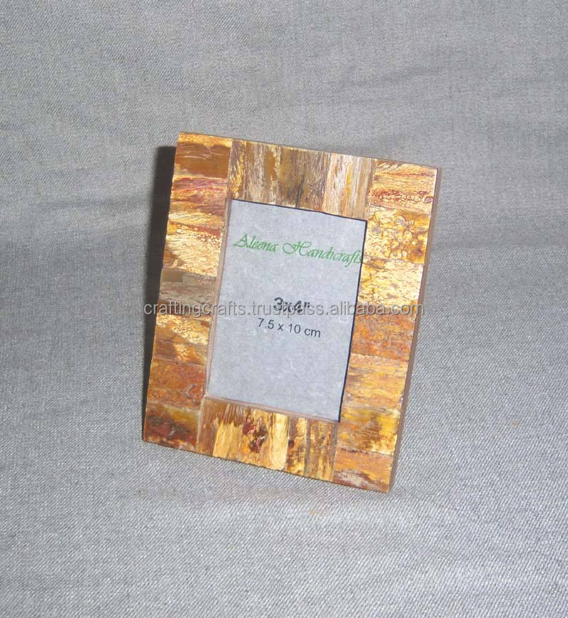 Ensemble de cadres photo modernes minimalistes en résine, personnalisables, vente en gros, décoration intérieure avec incrustation de corne, artisanat naturel mural