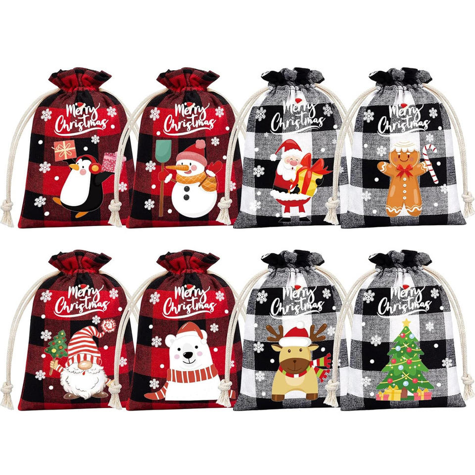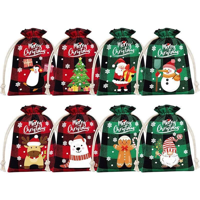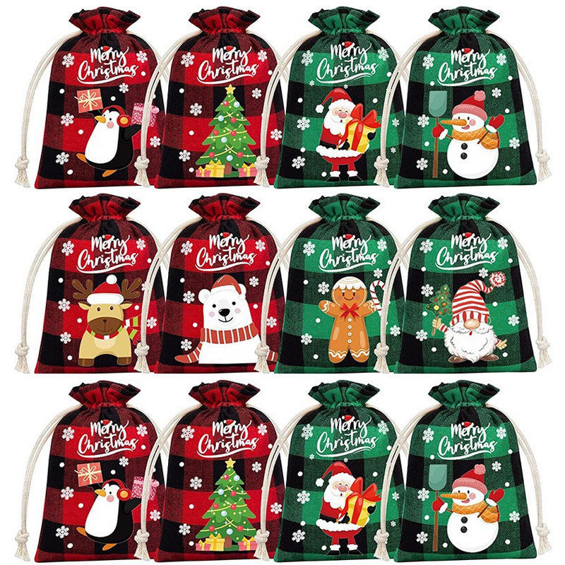 Elément de Noël réutilisable personnalisé imprimé coton et lin avec cordon petit sac cadeau de Noël