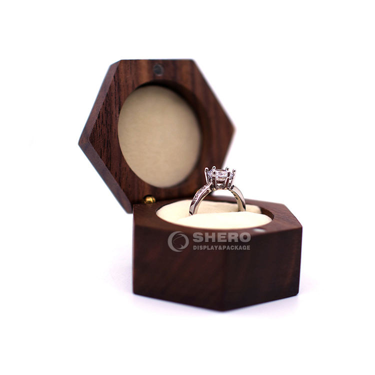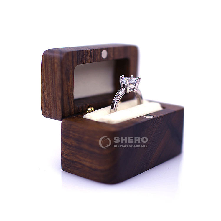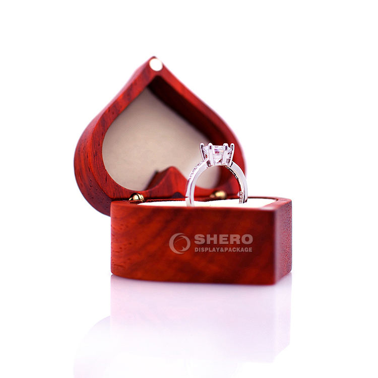 Porte-bague personnalisé avec gravure de logo, boîte à bague en bois de noyer noir en forme de cœur pour demande en mariage, pour mariage
