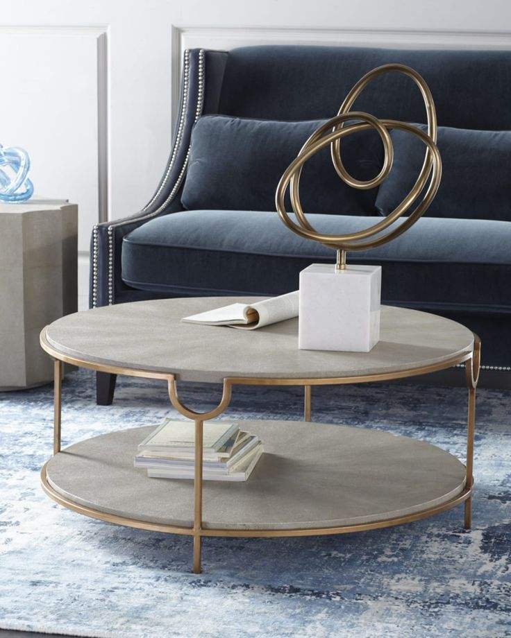 Ensemble de table basse ronde personnalisée Base en métal de luxe Plateau en dalle de roche Mobilier pour salon, hôtel, appartement Table à thé Table d'appoint