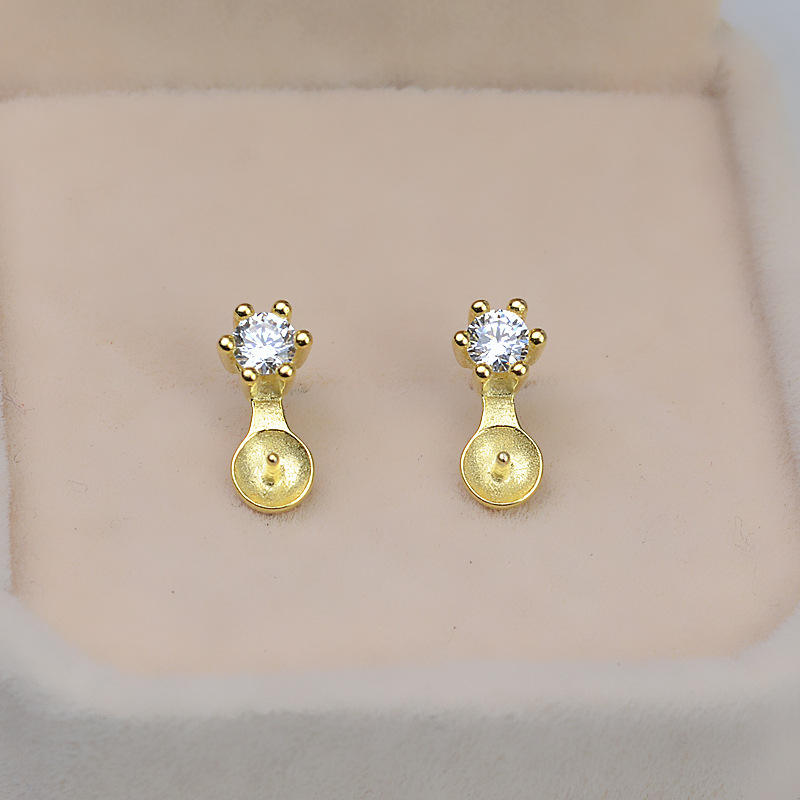 Boucles d'oreilles semi-finies en argent S925 personnalisées en forme d'éventail pour femmes, tendance, avec support creux pour perles, boucles d'oreilles DIY
