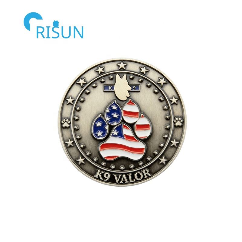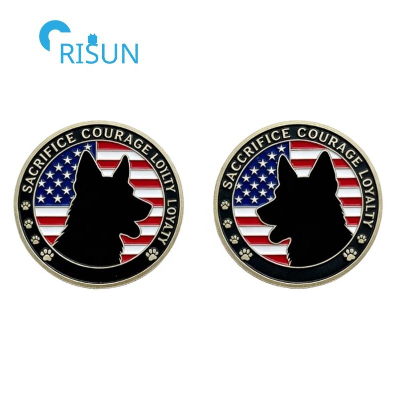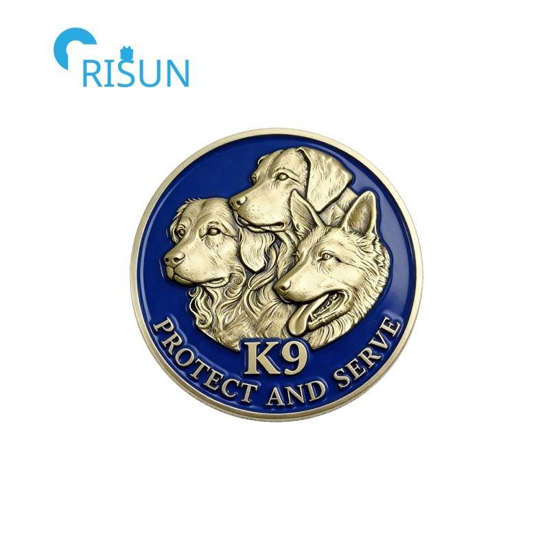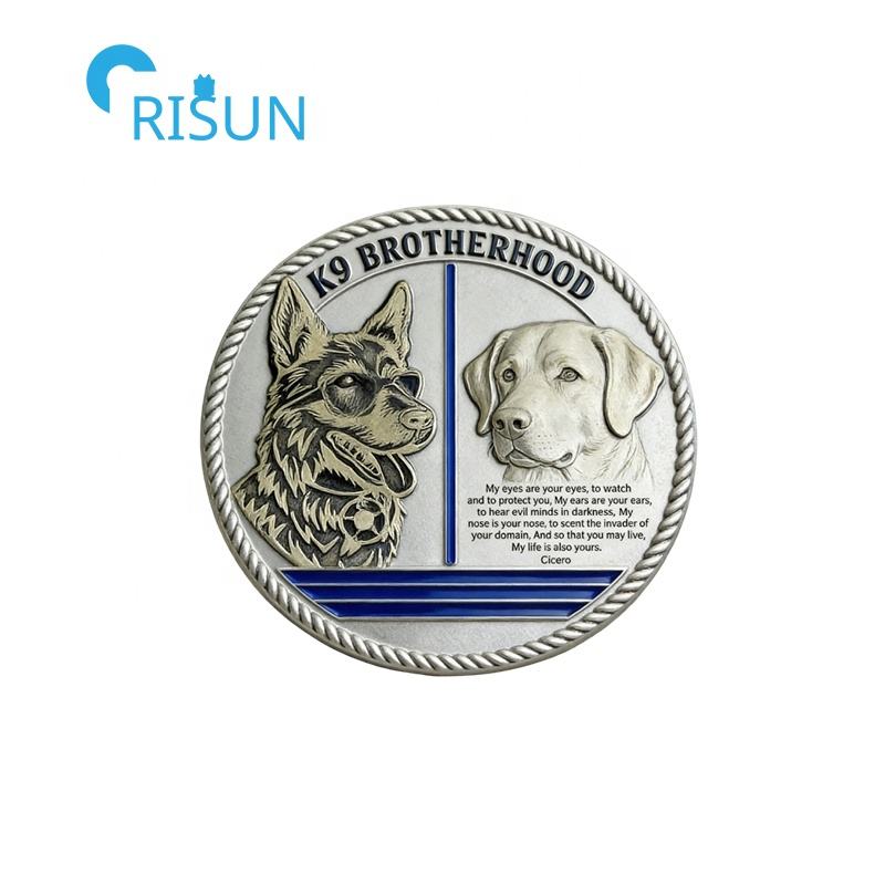Marque nom:Risun Thin Blue Line K9 Dog Canine Challenge Coin