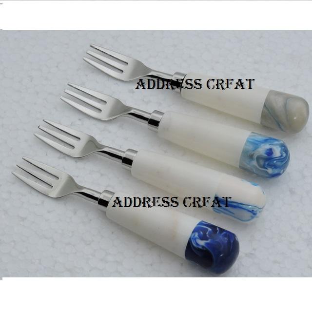 Ensemble de fourchette personnalisé en acier inoxydable poignée en résine table décorer fête d'anniversaire utilisé cuillère et fourchette de service ensembles de vaisselle