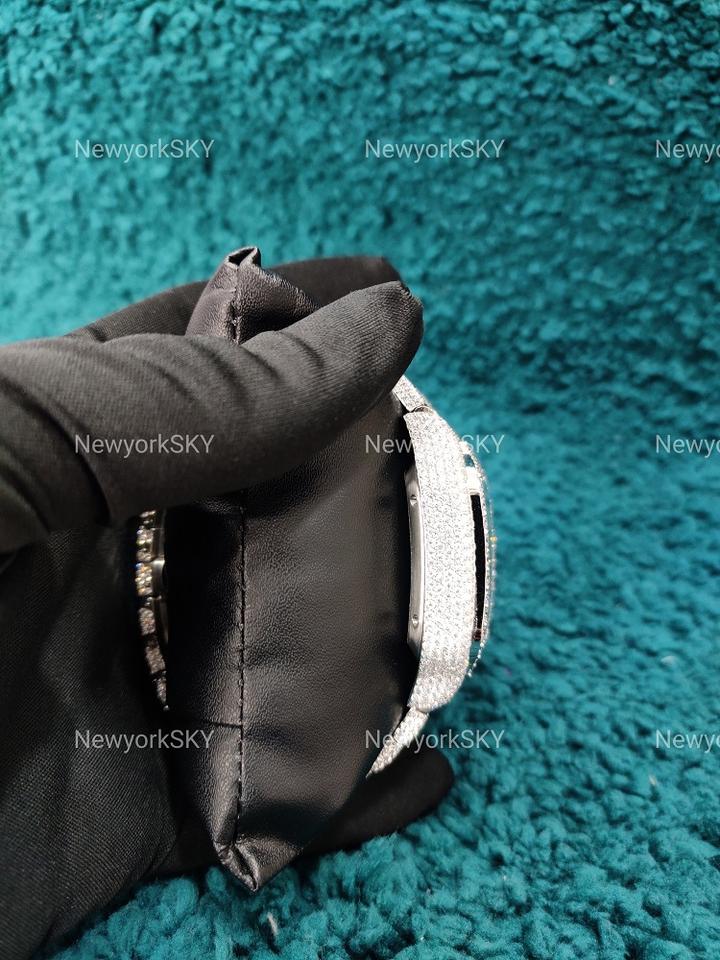 Montre personnalisée en acier inoxydable avec cadran carré de 40mm coupe ronde Moissanite diamant fabriqué à la main Iced Party Wear for Her