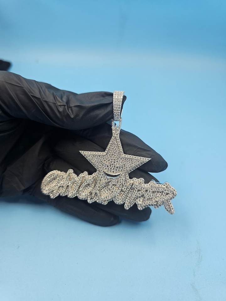 Pendentif rond en moissanite personnalisé avec étoile et lettre superbe en argent 925 pour fête hip-hop, bijoux fins, pendentifs et breloques