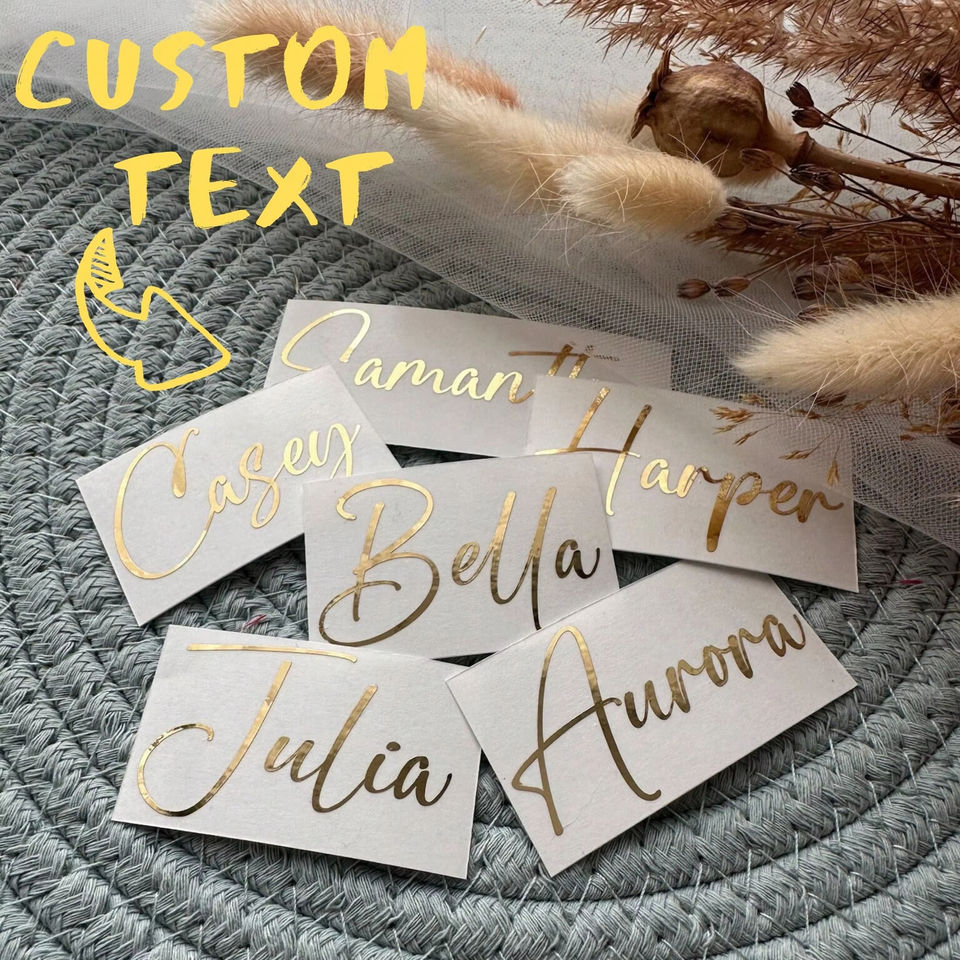 Autocollants personnalisés avec nom brillant, étiquettes nominatives sur mesure, effet feuille d'or