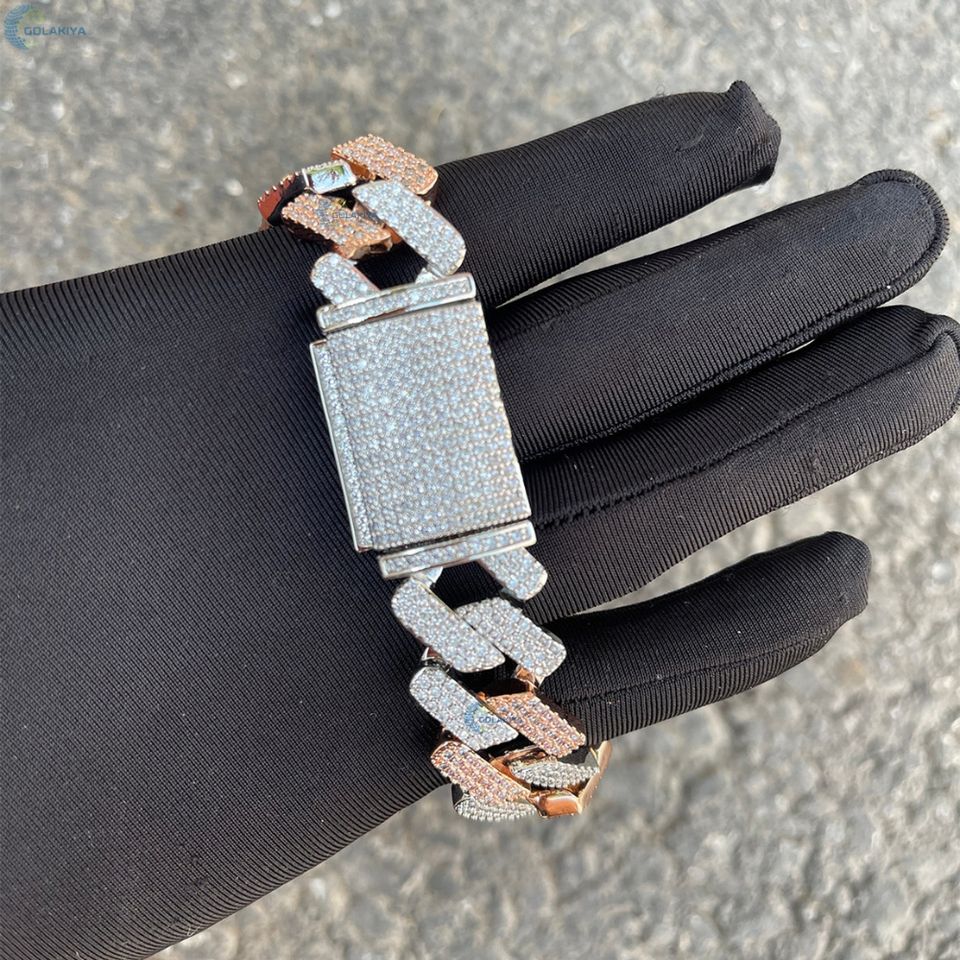 Personalized Two Tone 925 Sterling Silver Moissanite Hip Hop Bracelet Iced Out 20MM Cuban Link Bracelet For Him