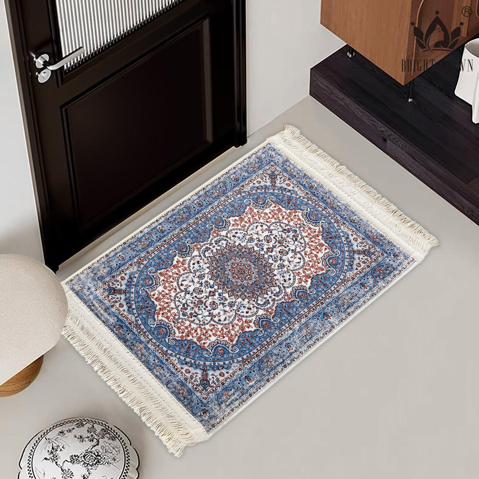 Tapis de porte en velours personnalisé, antidérapant avec dos à pois et bordure à pompons, lavable, en polyester, pour la décoration de la maison