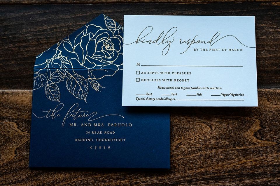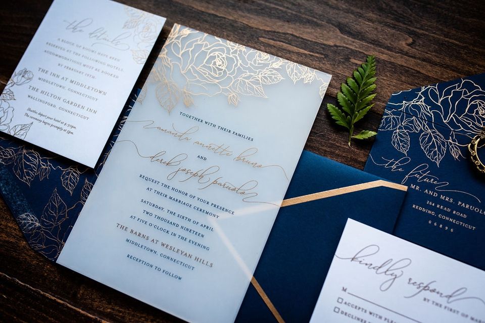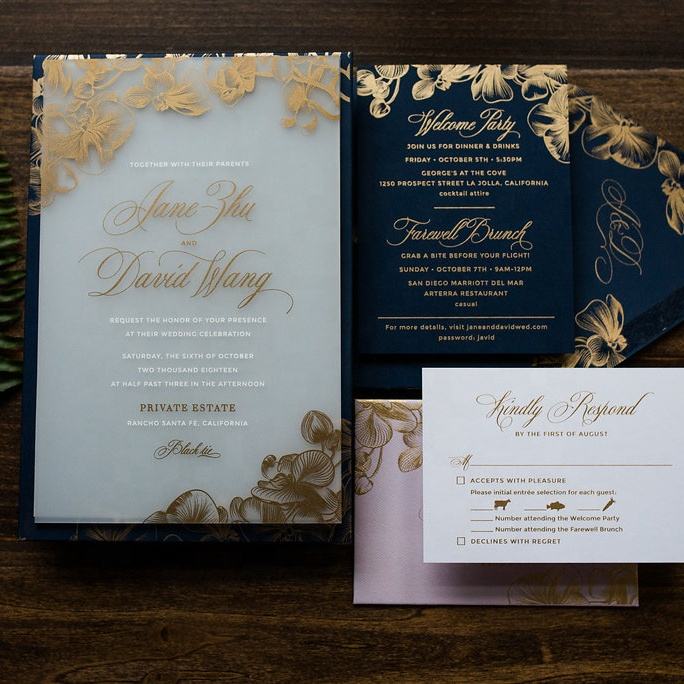 Ensemble de cartes de mariage personnalisées, carte d'invitation de mariage florale en acrylique personnalisée avec feuille d'or