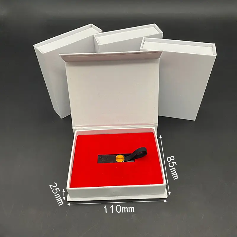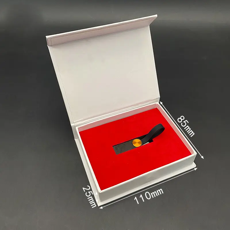 Petite boîte en papier cadeau magnétique blanche personnalisée avec insert Cadeau d'emballage de carte mémoire clé USB au design de luxe