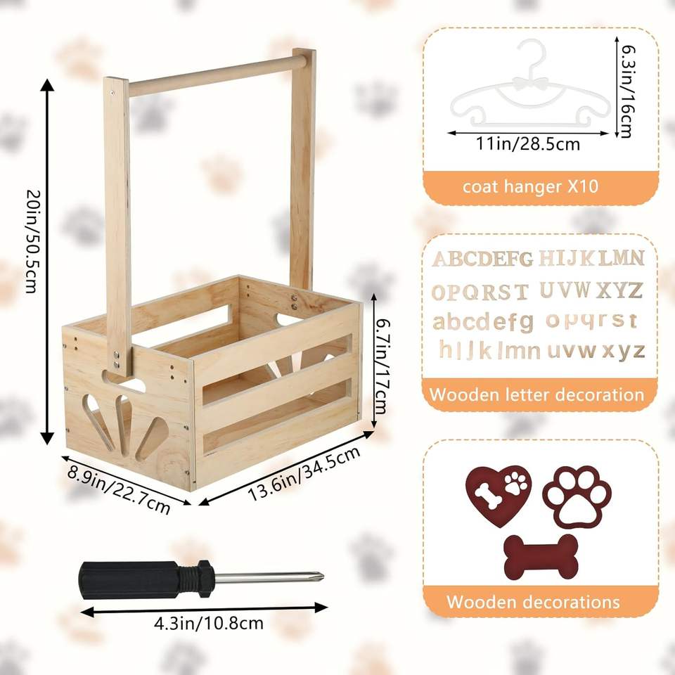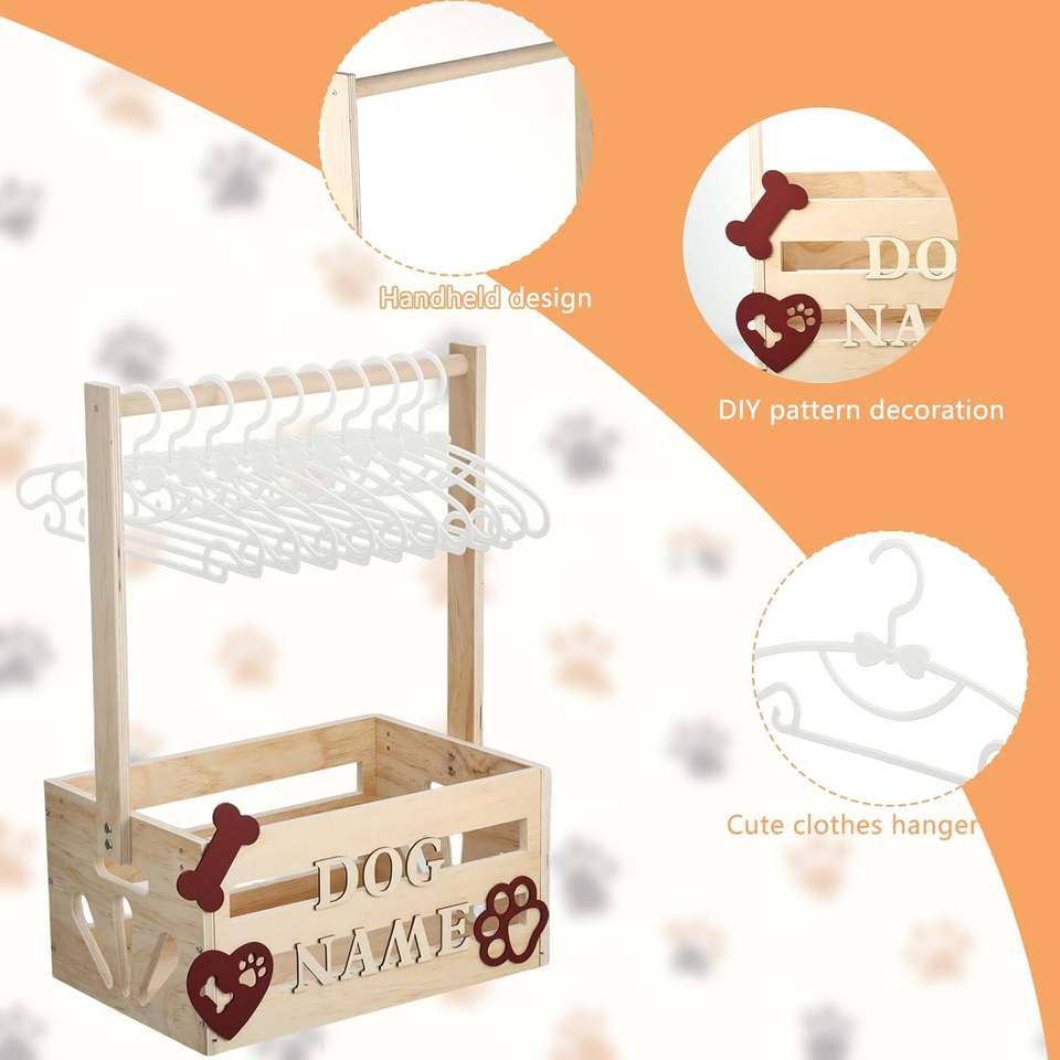 Personalized Wooden Rectangle Eco-friendly Art Deco Pet Wardrobe Closet Hanging Rods Easy Assembly Alphabet Letter Baskets Dog