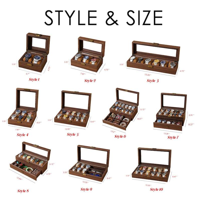 Mallette de rangement personnalisée pour montre en bois avec couvercle en verre Organisateur de montre gravé personnalisé pour 2 à 20 montres bijoux
