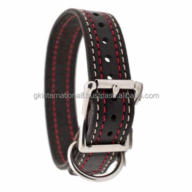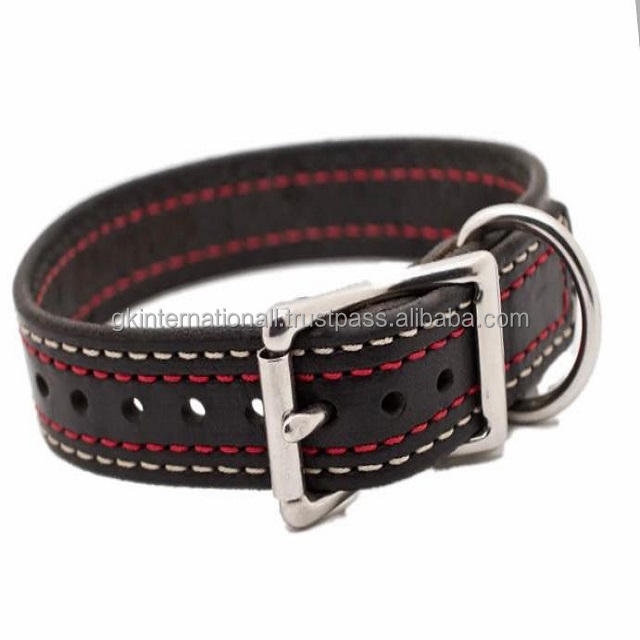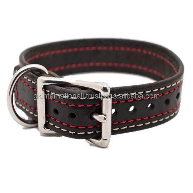 Collier de chien personnalisé en cuir noir à double coutures contrastantes entièrement réglables pour petits ou moyens animaux de compagnie avec quincaillerie en nickel