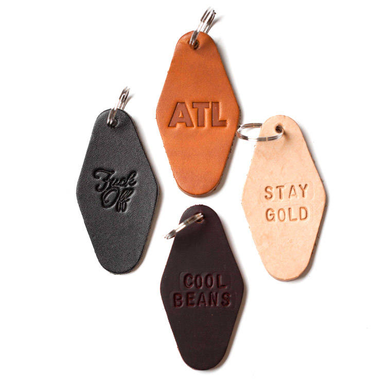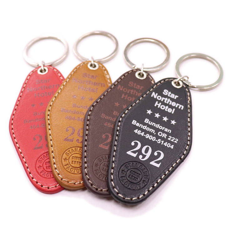Jin Sheu Étiquette porte-clés en cuir gaufrée avec logo personnalisé pour motel, message gravé personnalisable, économique