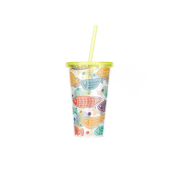 Tasses en plastique imprimées sur le thème de la mer en gros à la mode avec la tasse de boisson de paille Emballage: Boîte en carton, 48 pièces/CTN CBM: 0.09L G.W/CTN: 8.5kgs Taille d'emballage: L63 * W42 * H34cm