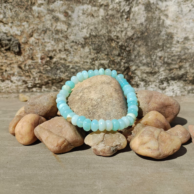 Nom du produit:Opale bleue lisse perles rondelle Bracelet