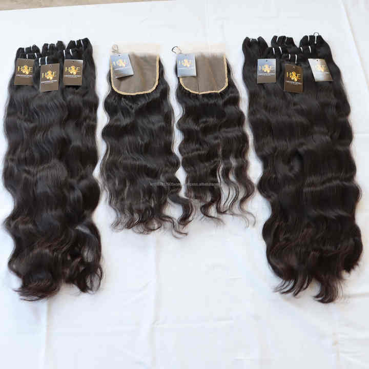 Fournisseur péruvien d'extensions de cheveux humains Paquets de cheveux bruts avec fermetures Hd Vendeur de cheveux de temple indien bruts vierges non traités