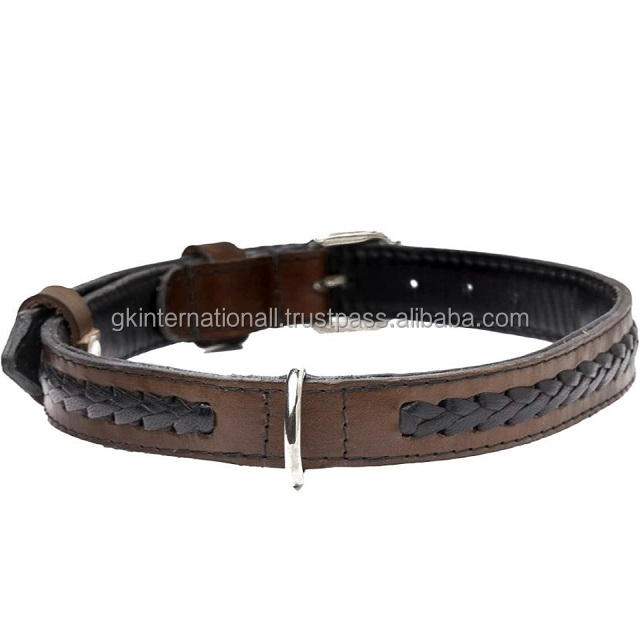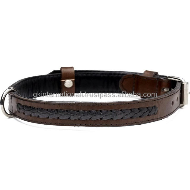 Collier en cuir tressé marron pour chien, boucles de ceinture réglables pour animaux de compagnie, avec boucle en acier inoxydable, disponible en plusieurs couleurs, prix de gros