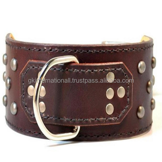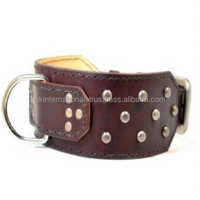Colliers et accessoires pour animaux de compagnie Collier de chien en cuir de vachette véritable Rembourrage souple Boucle et anneau en acier inoxydable avec rivets réglables