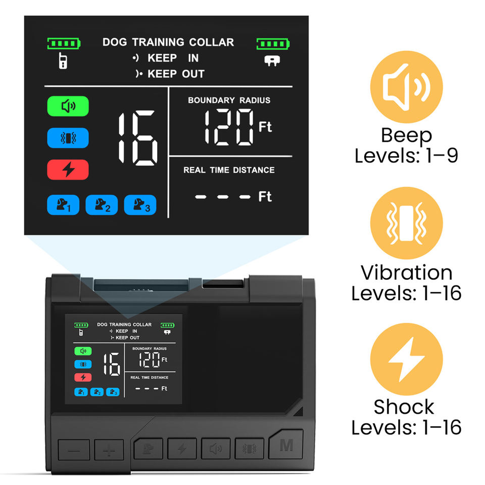 Collier de dressage sans fil avec télécommande et clôture virtuelle 3 en 1