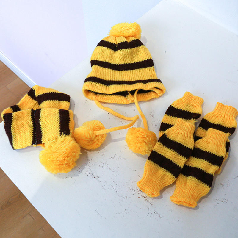 Pet automne hiver chat Teddy chiot Costume accessoires vêtements arc-en-ciel trois pièces ensemble chien écharpe pied couverture chien chapeau