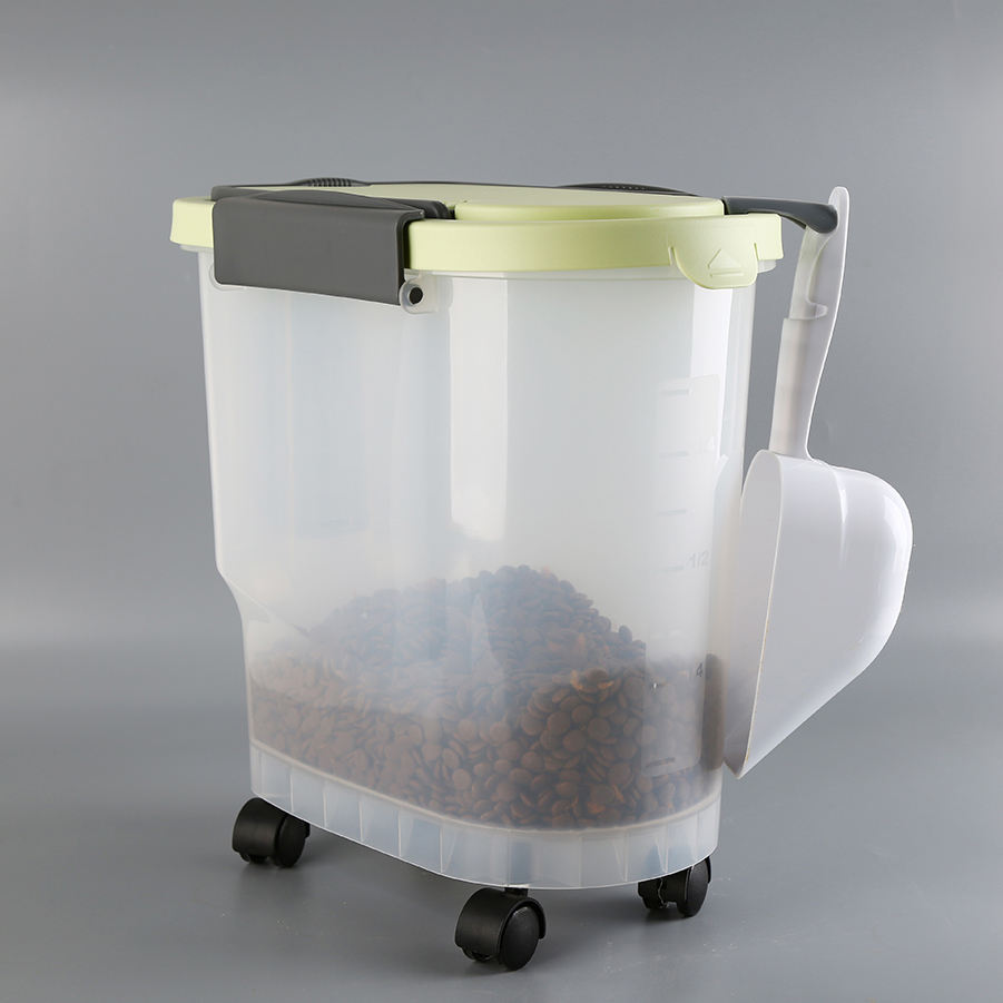 Conteneur de stockage d'aliments pour animaux de compagnie en plastique portable avec roulettes, 3L-30L, distributeur hermétique pour chiens et chats
