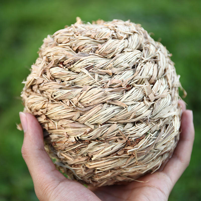 Pet Hamster Totoro Lapin Oiseau Cloche Herbe Balle Jouet Durable Molaire Jouer Boule de Foin avec Cloche Intégrée pour Petits Animaux