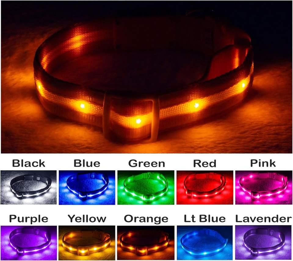 Collier LED pour chien en polyester/nylon, réglable, tendance, écologique, pour la sécurité nocturne, clignotant, lumineux dans le noir, laisse pour chien, poils de chien
