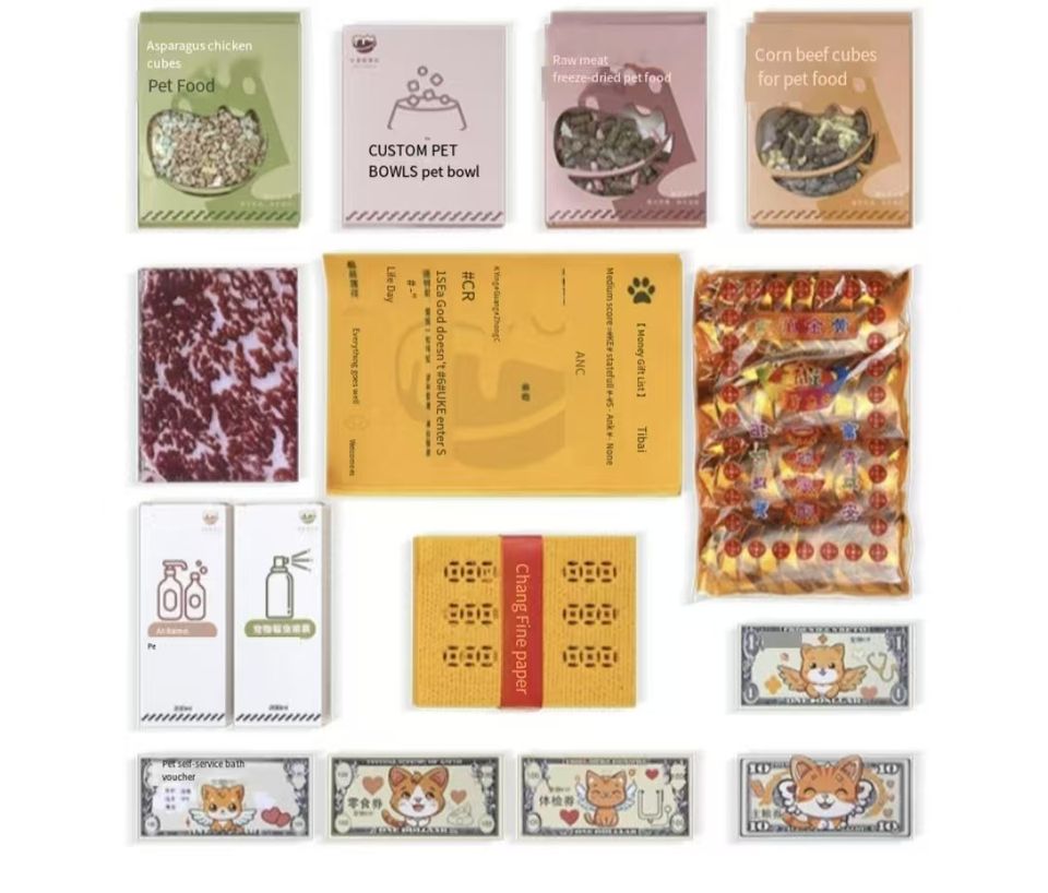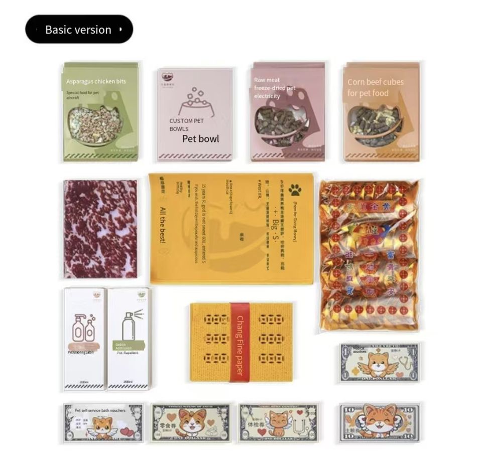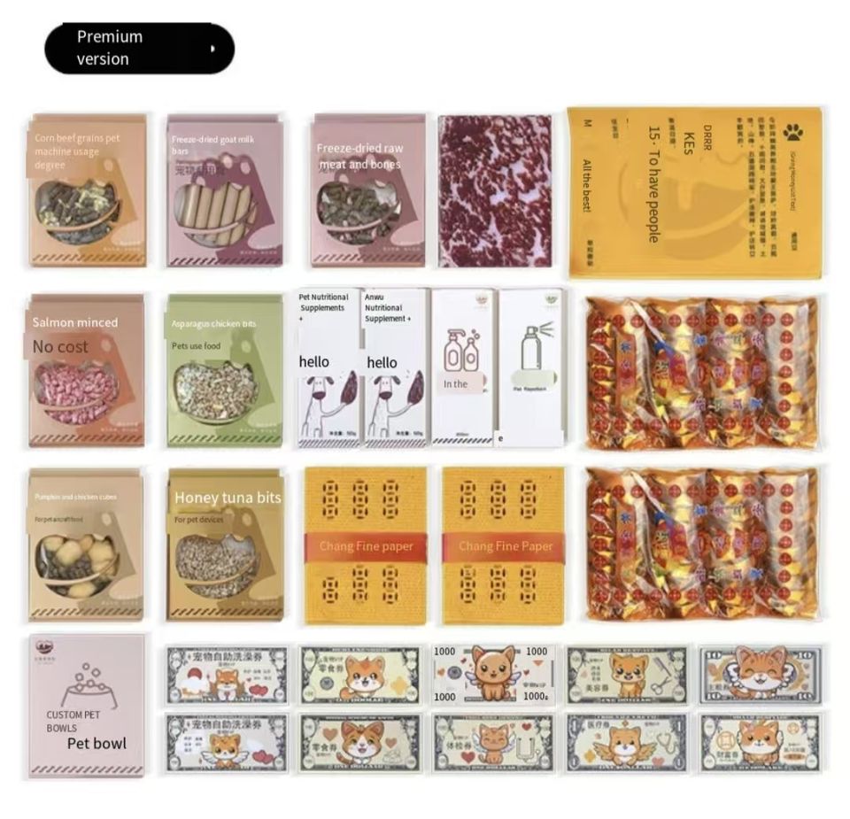Coffret cadeau de base Pet Life Memorial: comprend des bons alimentaires, des bons de bain et des aliments synthétiques.