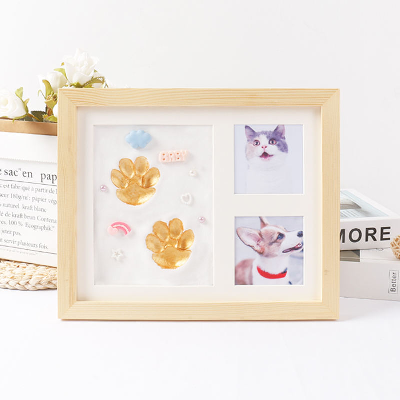 Encreur pour empreintes de pattes d'animaux, souvenir d'empreintes de mains et de pieds, empreinte de patte de chien personnalisée, cadre photo en bois 1 couleur, table