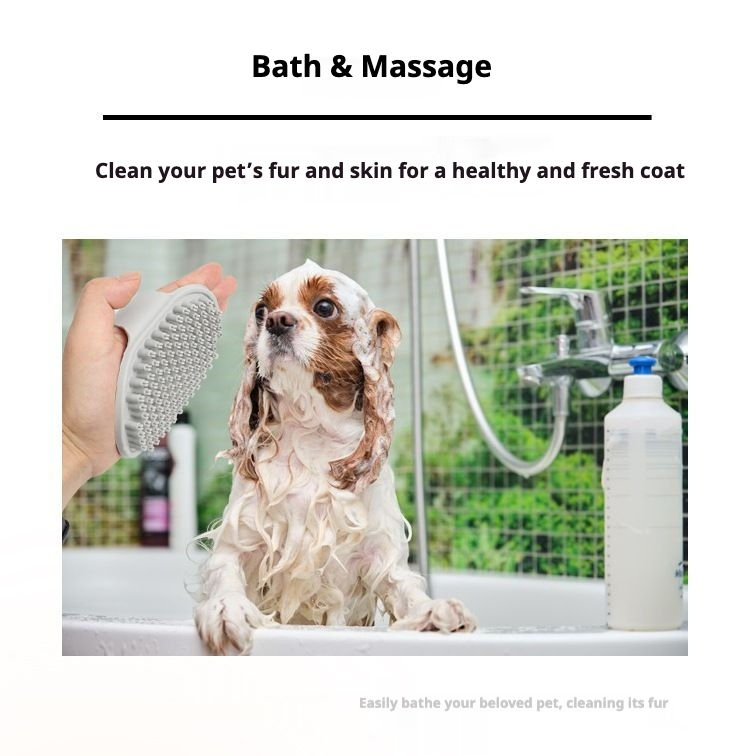 Soft silicone bristles for gentle massage, Helps clean pet fur and skin, Easy to hold ergonomic shape, Suitable for cats and dogs, Durable and waterproof materialFeature