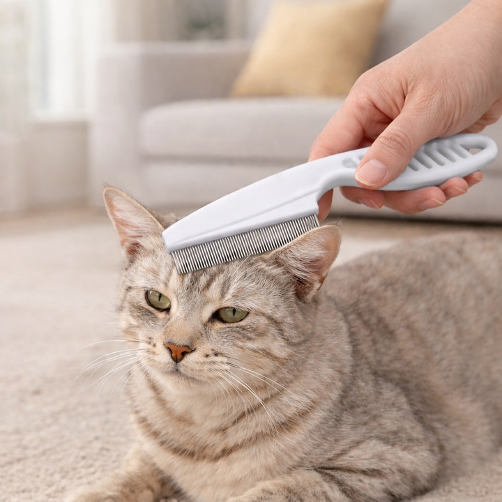 Peigne anti-puces en acier inoxydable pour animaux de compagnie, outil de toilettage à dents fines, brosse de nettoyage pour chiens et chats, élimination des tiques et des puces, dents denses