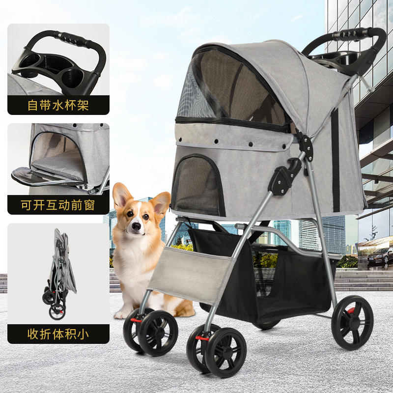 Poussette pour animaux de compagnie, pour chiens et chats, légère, pliable avec un seul bouton, portable, avec porte-gobelet et fenêtre avant en maille