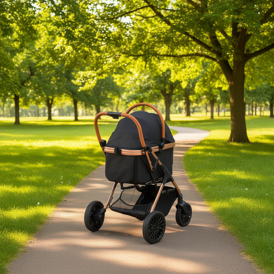 Poussette pour animaux de compagnie pour chiens de petite et moyenne taille, 4 roues, panier amovible, capacité de 66 lb, avec panier de rangement et freins rotatifs