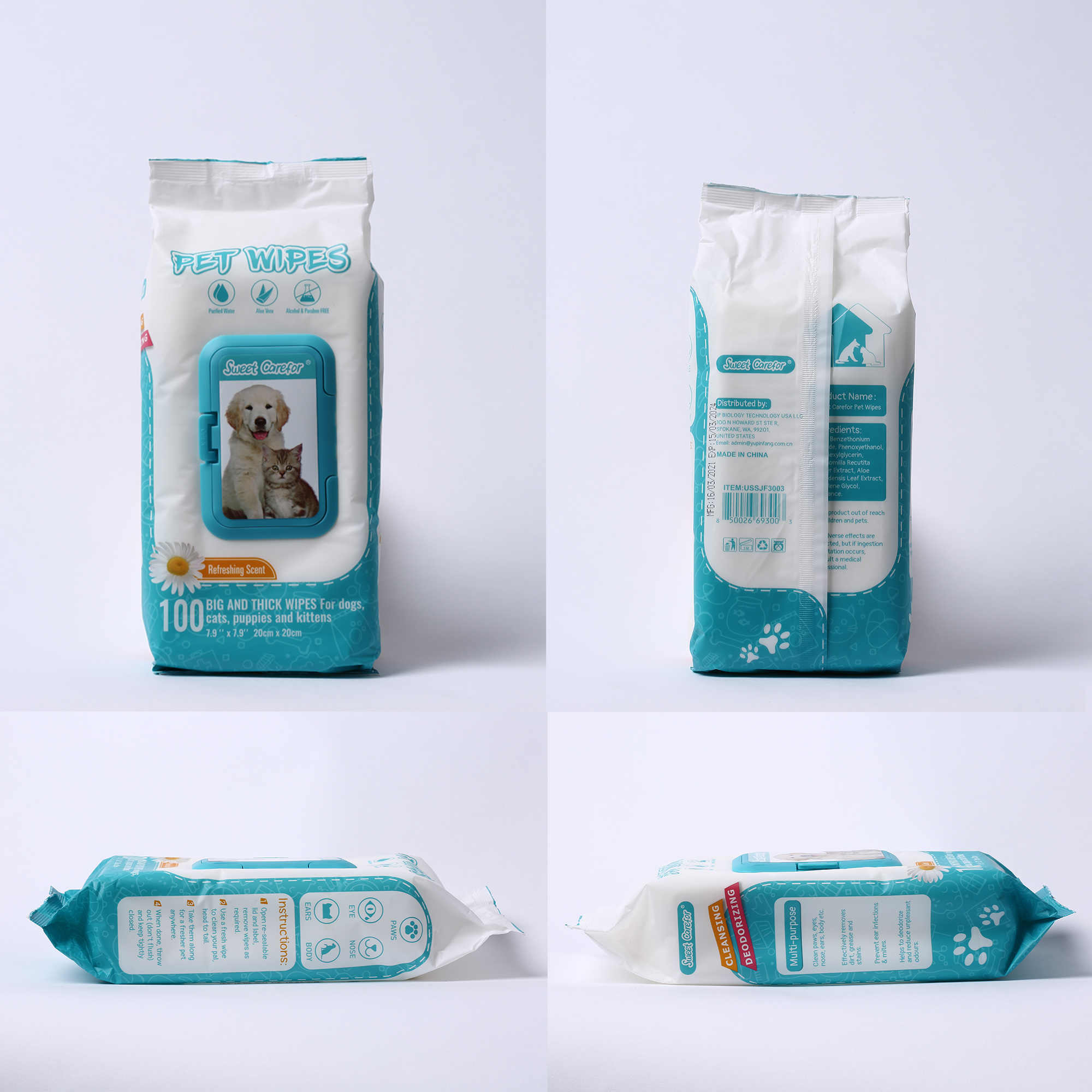 Caractéristique:Lingettes désodorisantes pour animaux de compagnie antibaterial toilettage sanity nettoyage