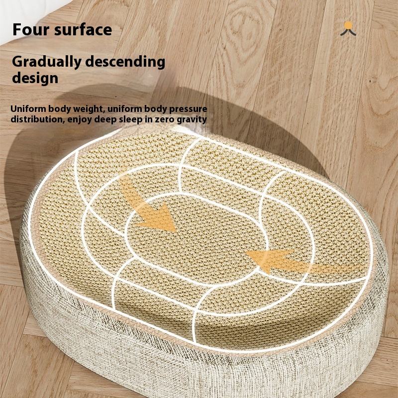 Petop Arbre à chat moderne, griffoir ovale avec nid intégré, panneau en sisal tressé résistant à l'usure, anti-griffures, sans miettes, accessoire d'agrépement