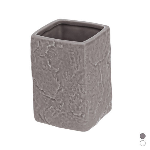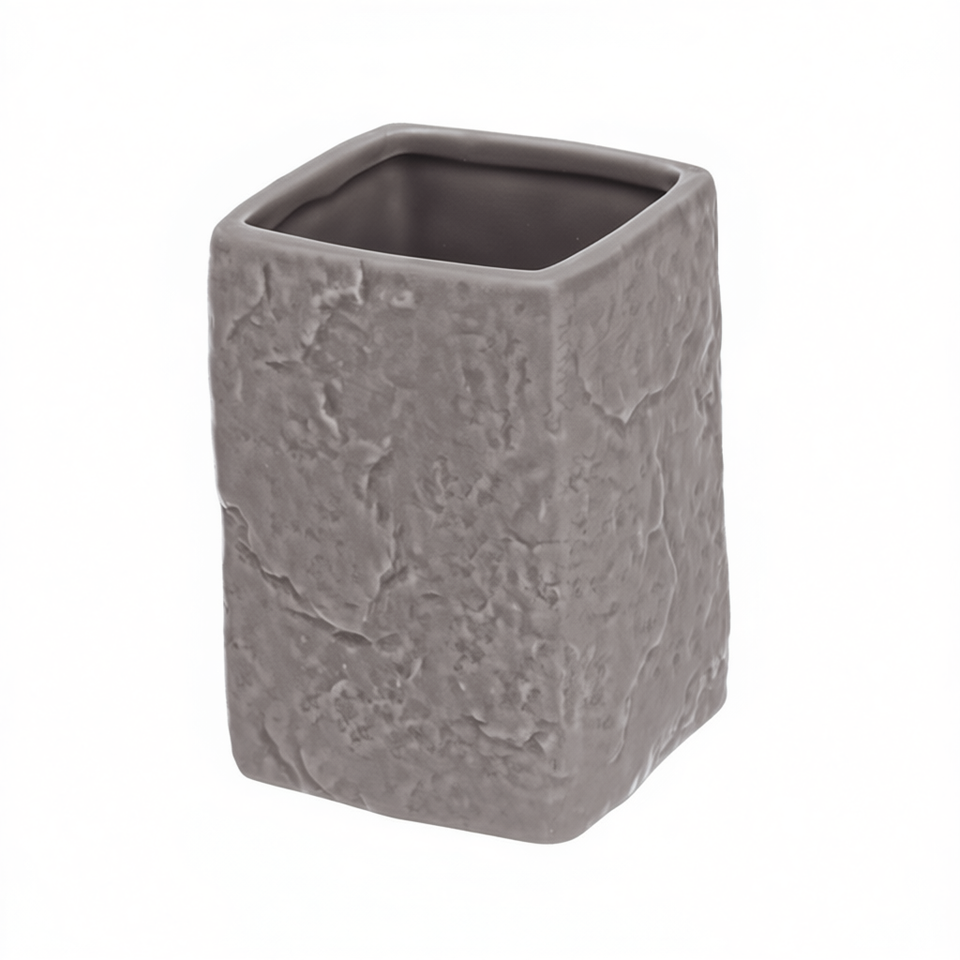 Porte-brosse à dents Petra Line gris, largeur 7 cm, hauteur 10,5 cm, design texturé en céramique, accessoire de salle de bain