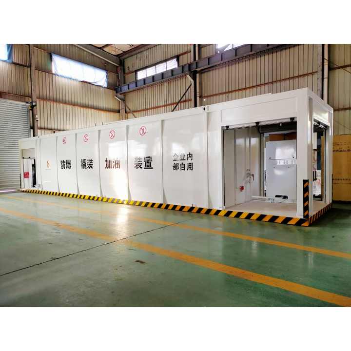 Station-service d'essence Conteneur de remplissage de carburant Station de carburant mobile Station montée sur dérapage avec distributeur de carburant équipé d'un camion-citerne