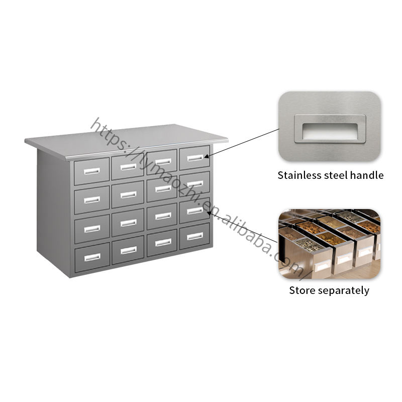 Meubles de pharmacie Table de rangement en acier inoxydable avec tiroirs pour pharmacie et hôpital