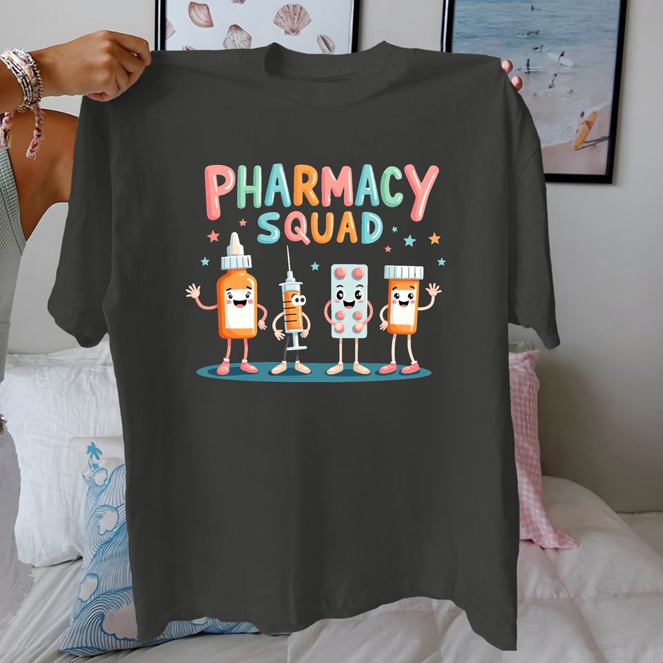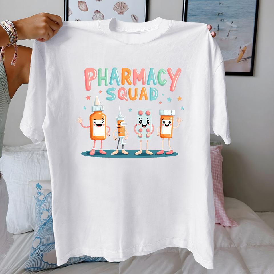 Pharmacy Squad Cartoon Characters Casual Knitted Print Women's 100% Cotton Comfort Fit T-Shirt
