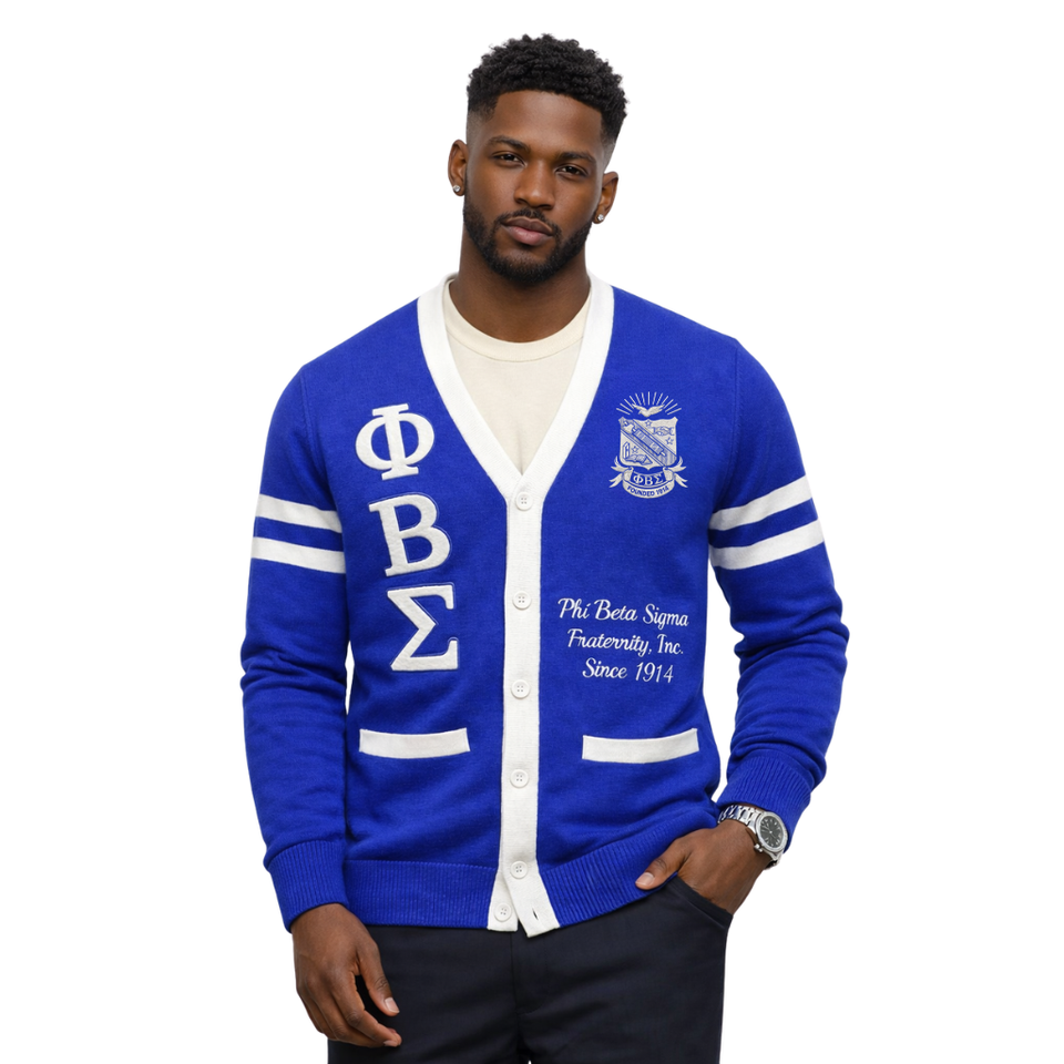 Cardigan Phi Beta Sigma pour Hommes – Tricot Premium, Coupe Confortable, Style Classique – Vêtement de Fraternité Grecque, Tenue Décontractée