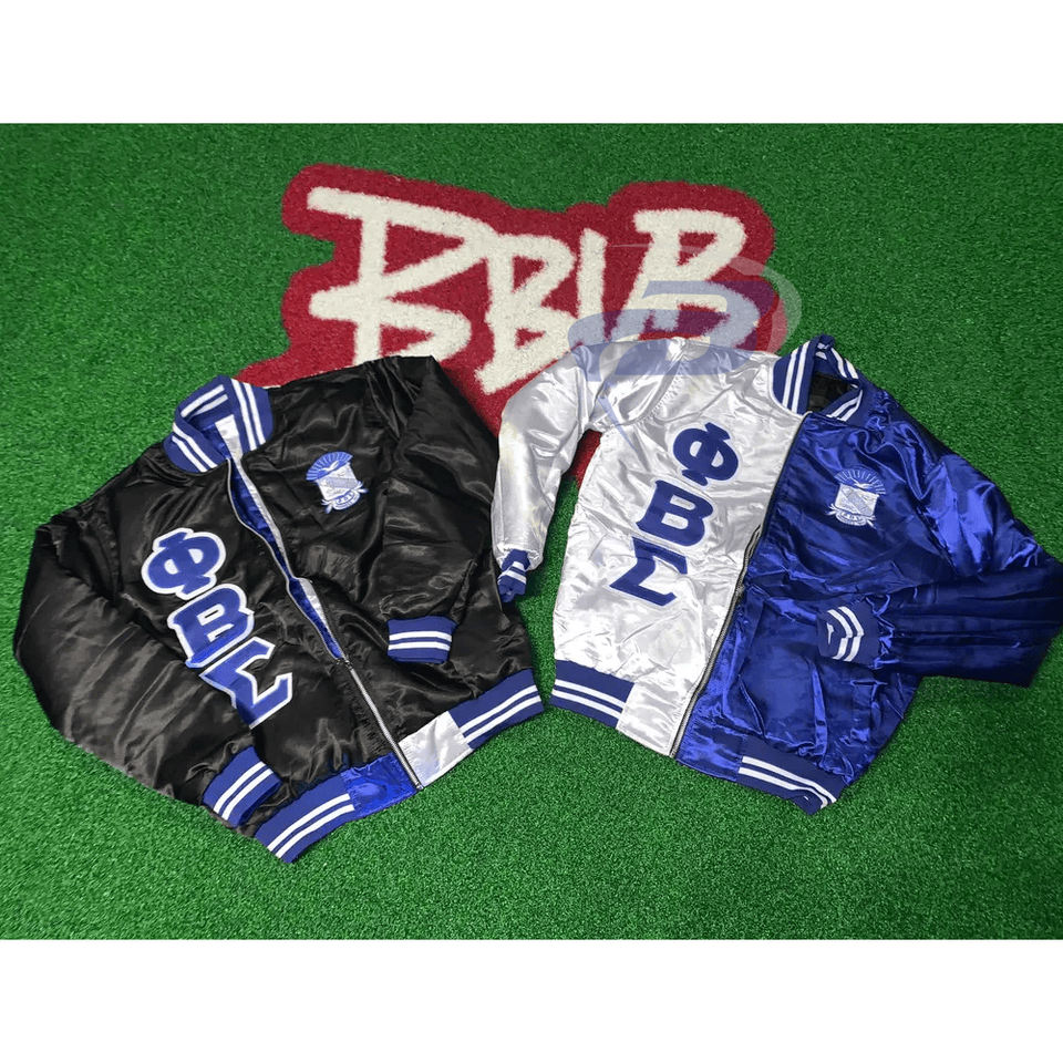 Veste bomber en satin de soie réversible formelle d'hiver personnalisable Phi Beta Sigma, style universitaire avec lettres grecques, fermeture éclair