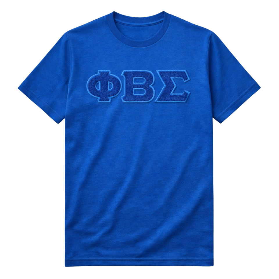 T-shirt en chenille bleu roi uni Phi Beta Sigma pour homme – Tissu premium, coupe confortable – Vêtement décontracté pour fraternité grecque
