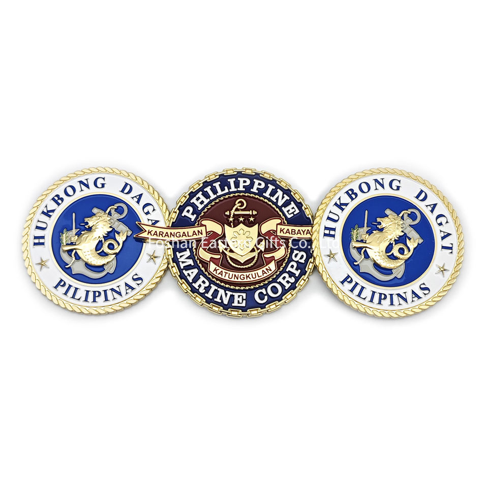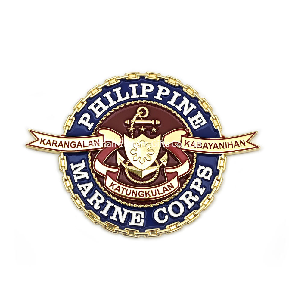 Logo du Corps des Marines des Philippines 3 pouces, emblème de voiture en émail dur doux plaqué or à prix d'usine personnalisé